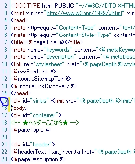 siriusをHTML記述と同じ記述に変えます